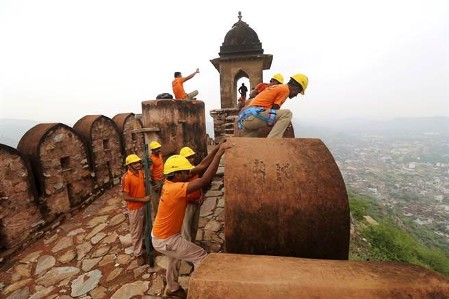 上周日傍晚,尽管当地天气状态不佳,但在印度北部斋浦尔的一个瞭望塔上,仍有27名游客和当地人在塔上和堡垒上观赏风景,有些正在自拍玩耍。
