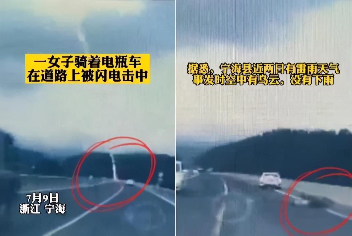 据媒体报道:一名女子在浙江宁海县马婆园村附近的道路上正常行驶时,不幸被闪电击中,导致意外身亡。