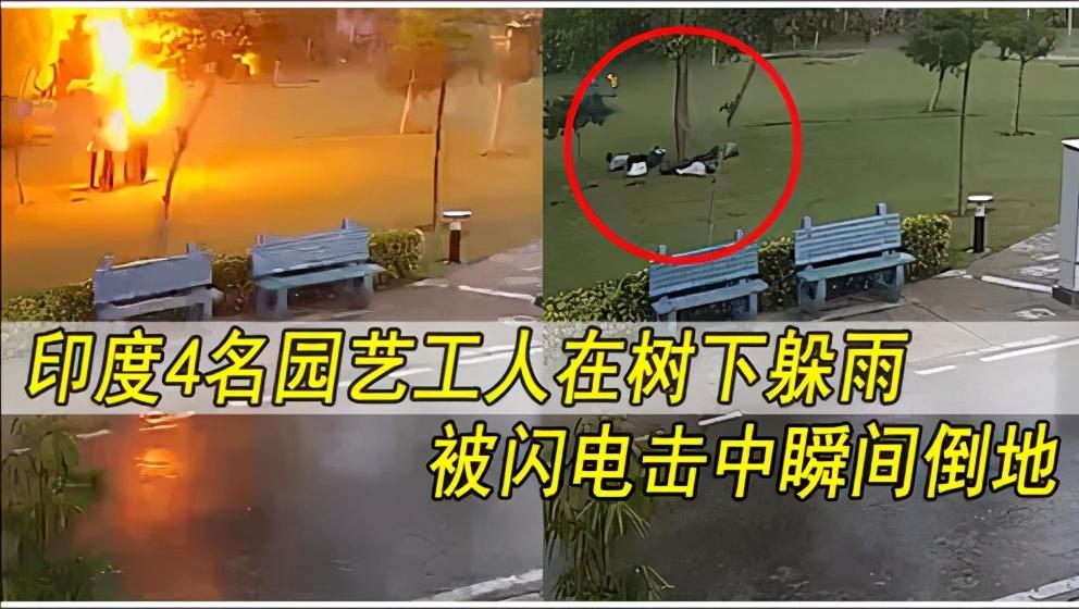 每年雷雨季,印度都会有许多人被闪电击中而死亡,先前有媒体报道,有4名男子在大树底下躲雨,结果大树被闪电击中,4名男子纷纷倒地,连挣扎都没有挣扎一下。