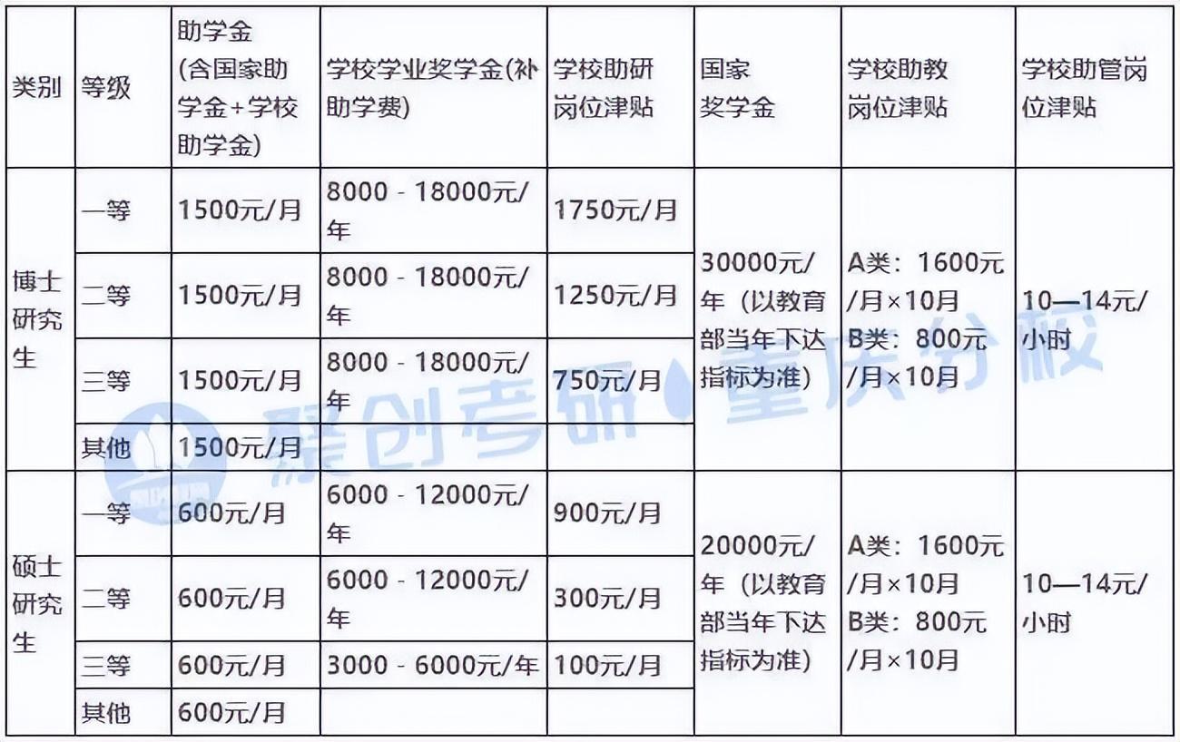 四川大学全日制研究生奖助体系完备,由国家奖助金和学校奖助金两部分构成。国家奖助金包括国家奖学金和国家助学金,学校奖助金包括学校学业奖学金和学校“三助”岗位津贴。