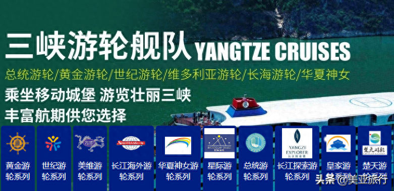 长江游轮旅行,有成建制的船队,分为豪华游轮和普通游船。豪华游轮共有世纪、长海、美维、华夏神女、黄金、总统、星际、楚天、皇家、长江探索10只船队,共40艘游轮,以及船票价格在1000元以下的普通游船。