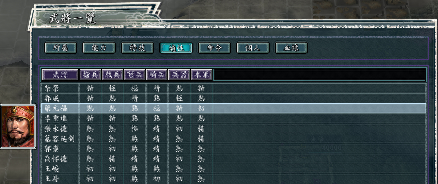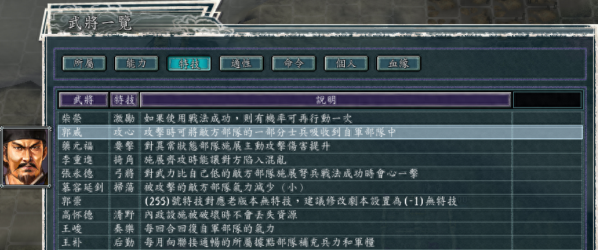 郭威是攻心特技,柴荣更是神技激励,手下还有一个后勤,其他武将虽然属性一般般,但是特技也还有点用。
