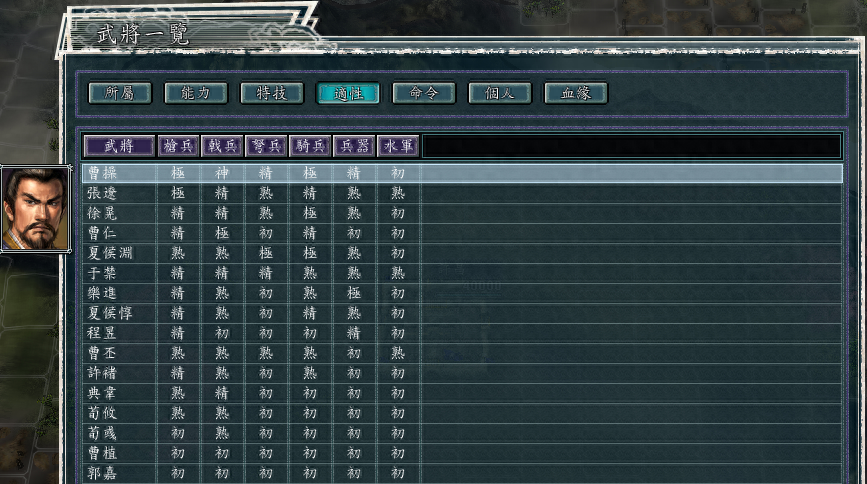 君主曹操特技还是虚实,说实话,有点浪费。因为曹操不错的统帅值,五围也很高,名列前茅。再加上戟兵神适性,使得曹操实际上是曹魏势力前期最主要的输出位。那你有个虚实有啥用?