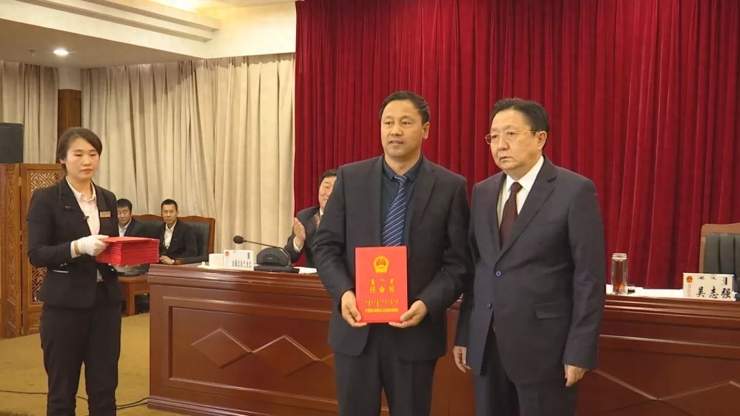 旗人大常委会主任吴志强为新任职人员颁发任命书。会议还举行了新任职人员向宪法宣誓仪式。
