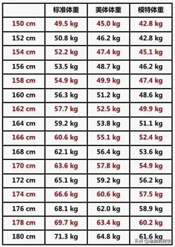 下面分享一张女性标准体重表给大家,大家可对号入座!