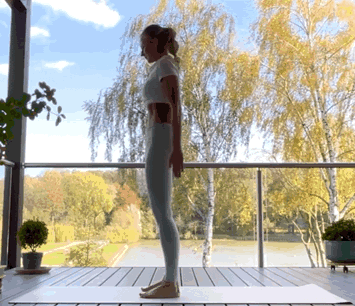 山式准备,呼气,收紧核心屈髋屈膝向后蹲吸气,还原,重复练习15-20次
