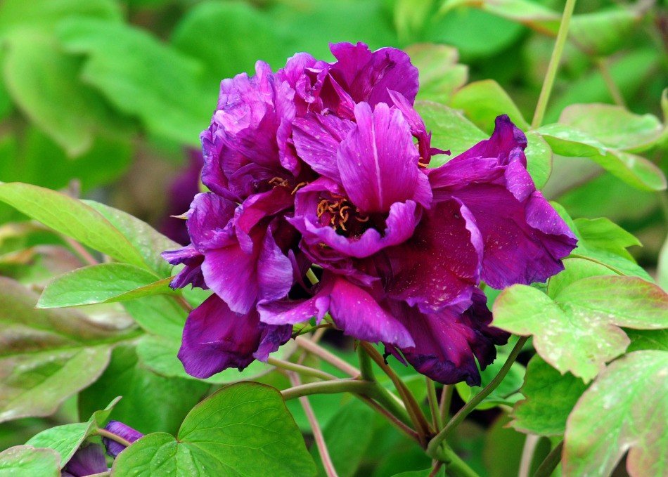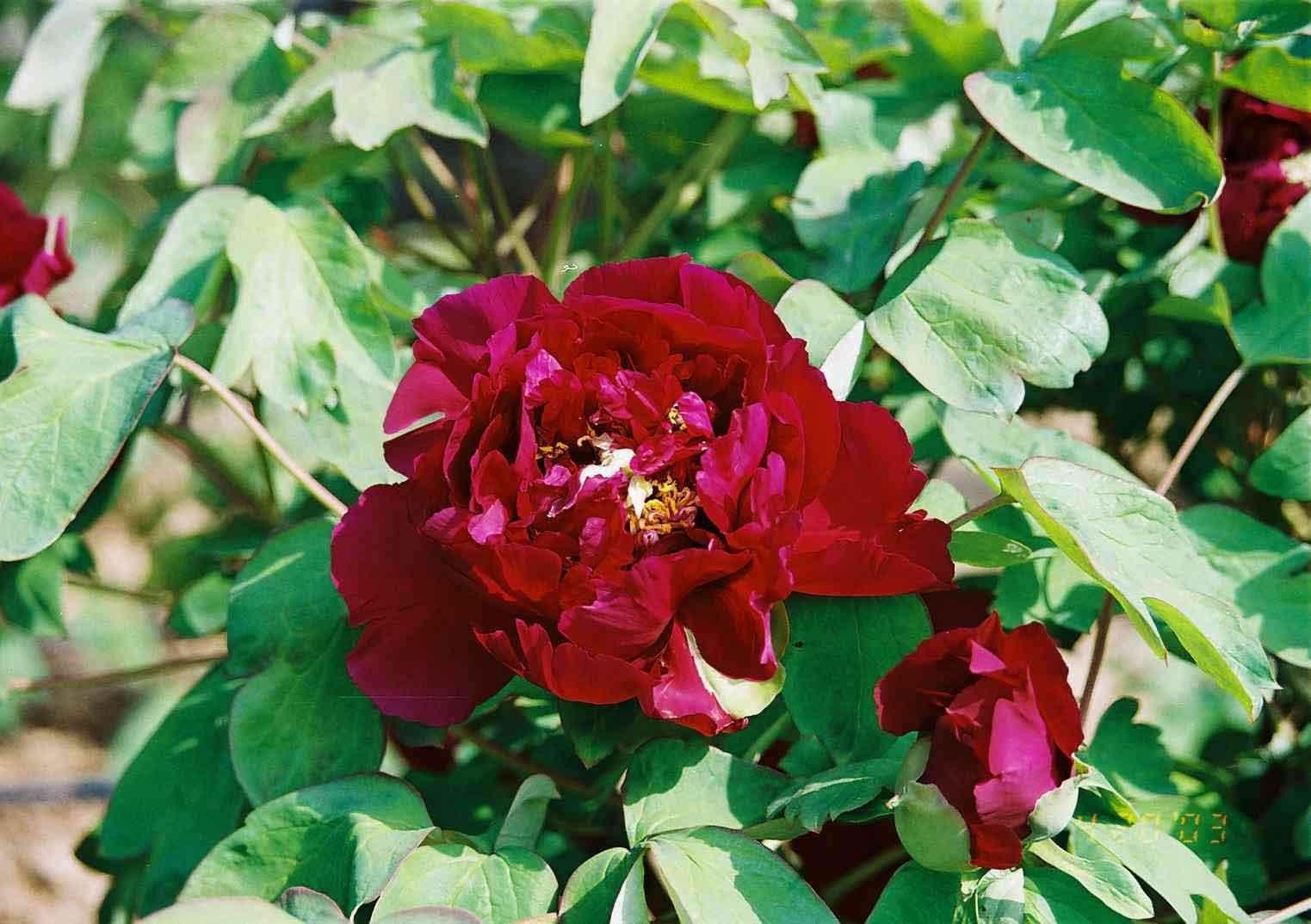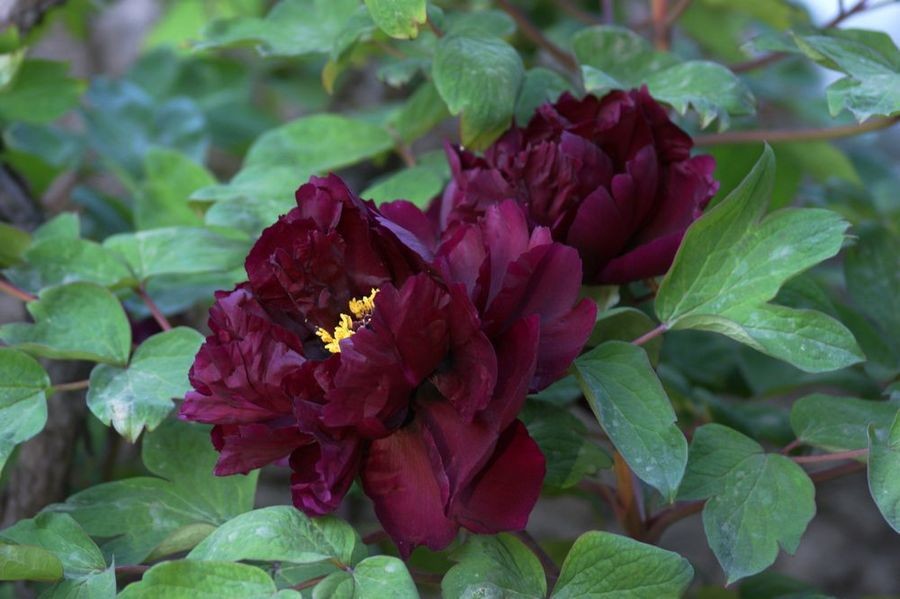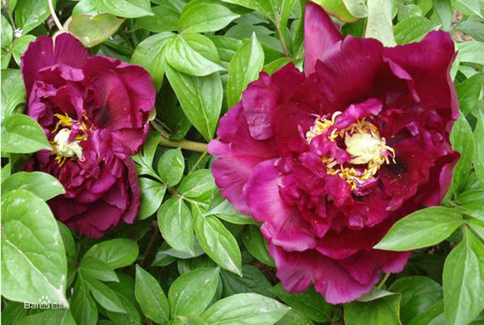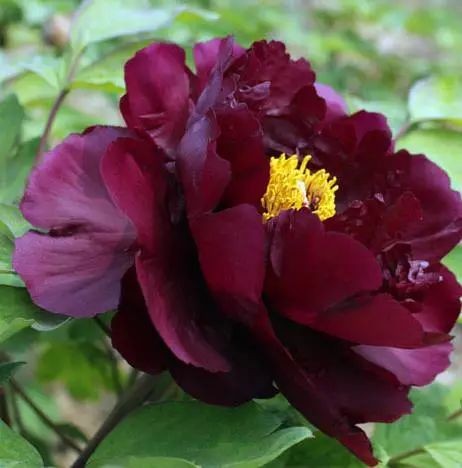 青龙卧墨池,别名黑牡丹,是牡丹名品。落叶灌木,株丛开展,枝繁叶茂。株型中高达1.5米,分枝短而粗,分枝少,萌蘖枝亦少。