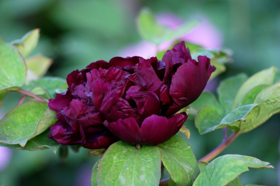 青龙卧墨池别名黑牡丹,花浅墨紫色,繁叶茂,花大香浓