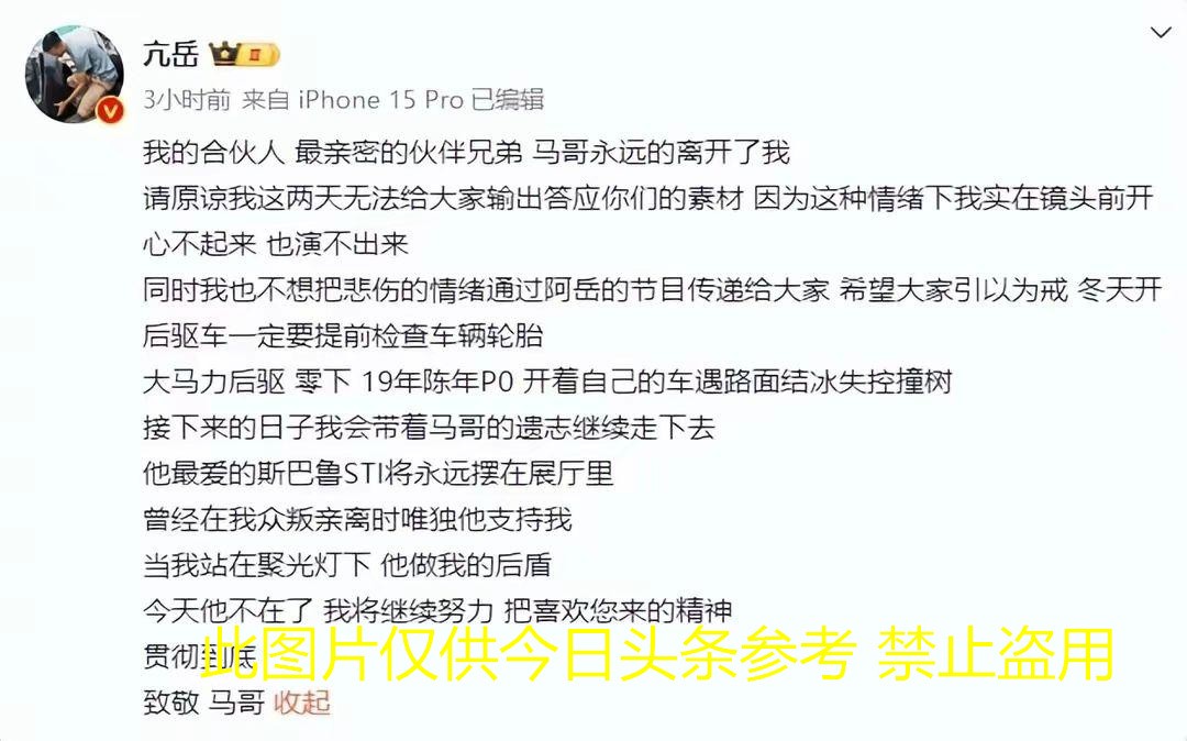 年仅34岁的汽车博主马龙因车祸去世,给粉丝们带来了巨大的震惊。他以阳光、风趣的风格在社交网络上分享汽车知识和生活感悟,受到了广泛喜爱。马龙在社交媒体上的最后一条视频还停留在介绍一款豪车的时候,这让人更加难以接受他离世的事实。这一突如其来的悲剧也提醒人们在驾驶中要倍加小心。