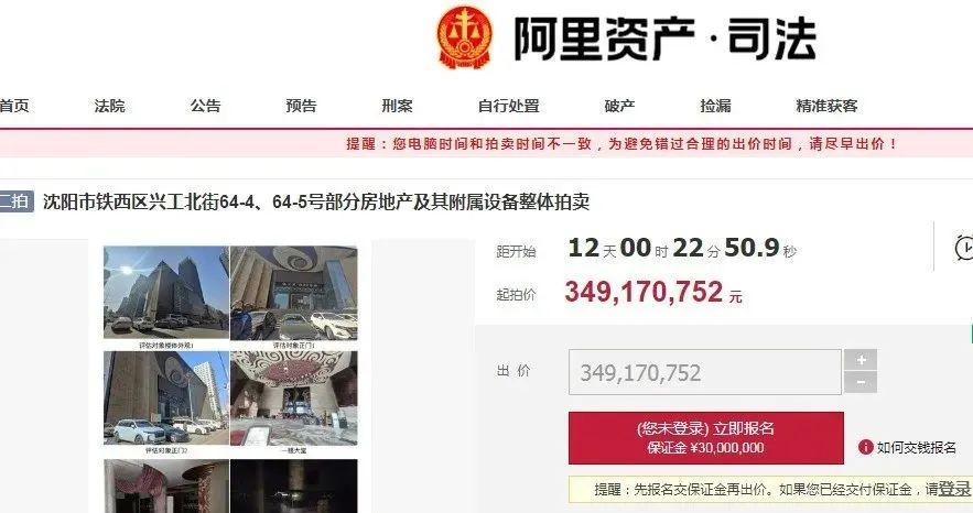 近日,阿里法拍挂出沈阳金碧海洋之星度假酒店法拍公告,标价3.49亿。这次为二拍,就在9月2日刚结束的第一次拍卖中,标价4.36亿,但是无人竞拍而流拍。