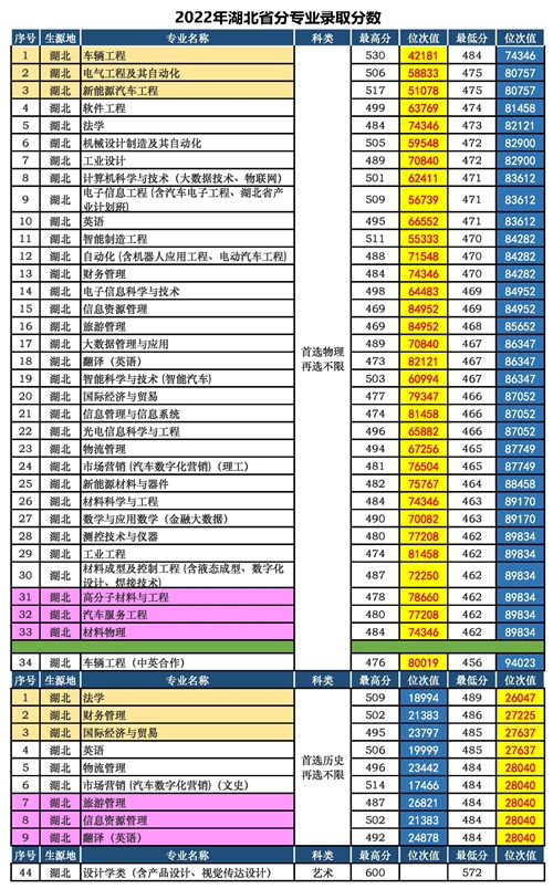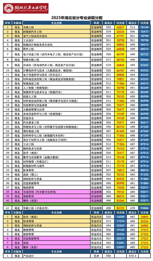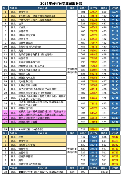 湖北省物理类省排名5万,历史类省排名1.5万之后的考生可考虑填报湖北汽车工业学院。