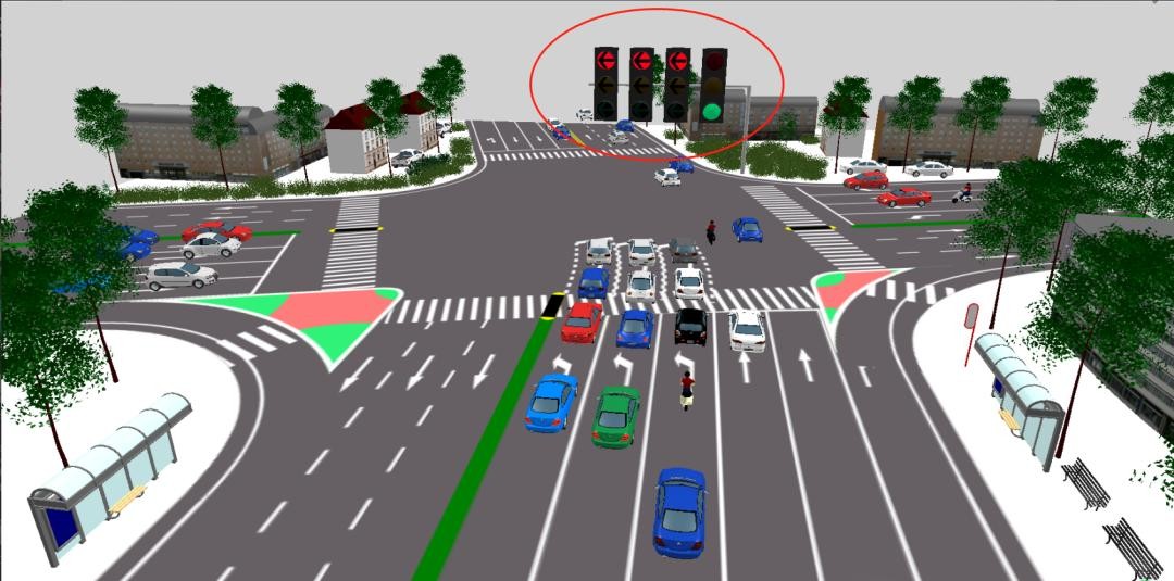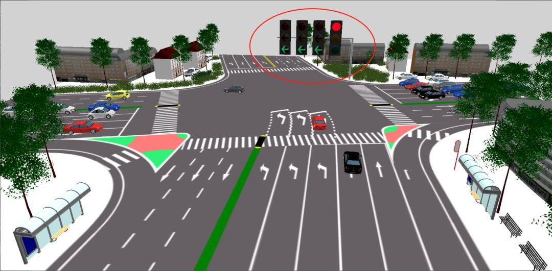 即使此时左转灯为红色,也能驶入并且不会被扣分罚款。