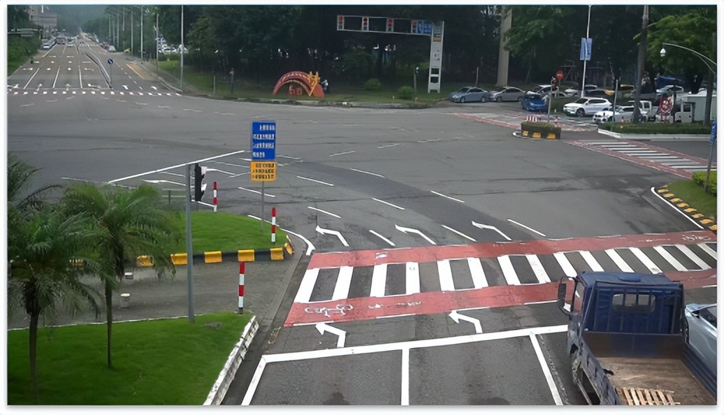 还在左转弯待转区的车辆,因为其实已经越过了路口的停止线,所以继续大胆往前走,完成左转是没有问题的