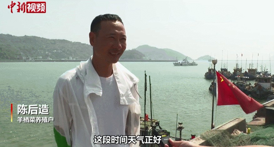 “今年我种了400多亩,这段时间天气正好,我们赶着收羊栖菜,今年的收成挺不错,已经收了100多船。”羊栖菜养殖户陈后造说。