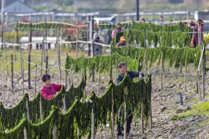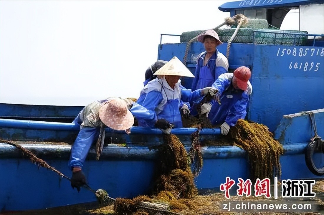 连日来,在“中国羊栖菜之乡”浙江省温州市洞头区,当地8000亩羊栖菜迎来了丰收。