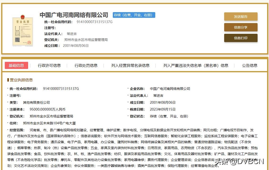 随后至2021年3月11日,河南有线的工商注册企业名称正式变更为“中国广电河南网络有限公司”,其也是DVBCN当年所重点发布的首家完成企业名变更的省网公司。