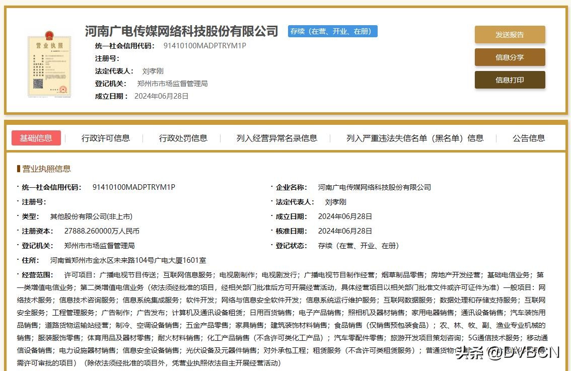 1)河南全新设立广电网络公司——河南广电传媒网络科技股份有限公司