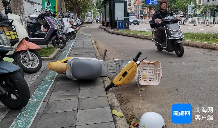 根据市民的报料,记者12月13日来到海口坡巷路(海口市中医院附近),在人行道旁划线的电动车停放区,记者看到有个别共享电动自行车被随意停放路边,有的共享电动车被推倒横卧在非机动车道的一侧,给原本不算太宽的非机动车道的骑行安全带来妨碍。记者现场观察到,此处路段电动车来往频繁,不少电动车骑行者途经此处时需要避开倒在路面上的共享电动车。