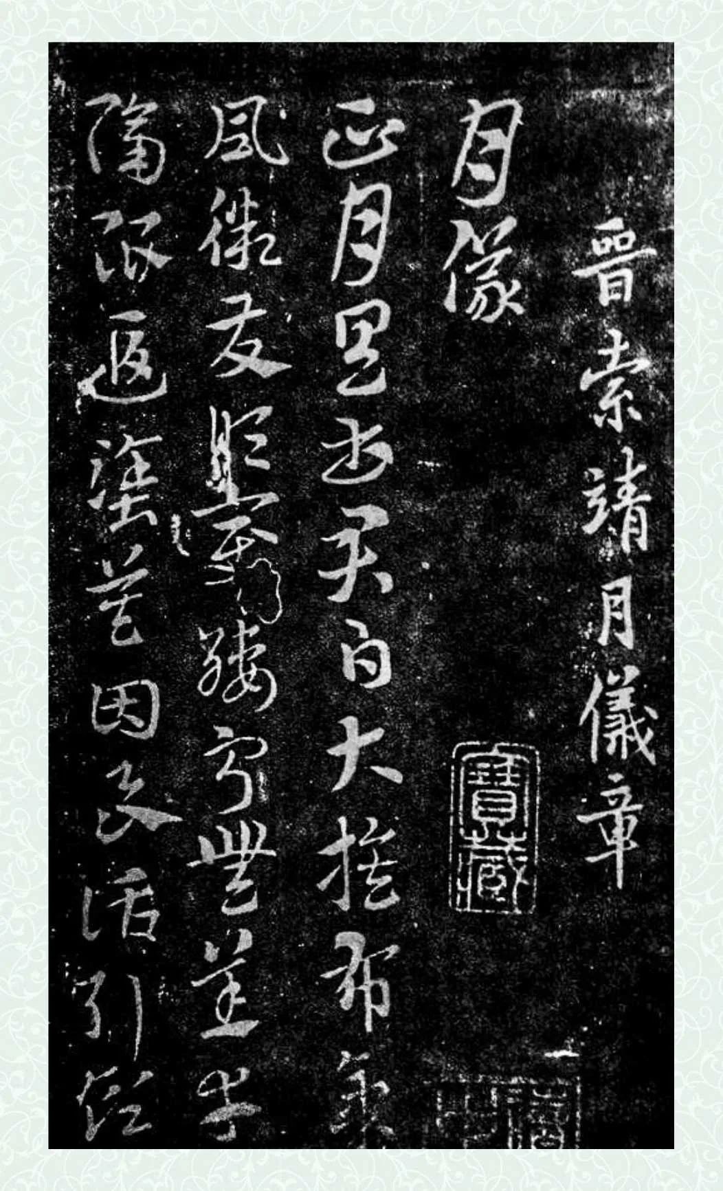 《月仪帖》传为西晋书法家索靖所书,是章草名帖。我们见到的是《邻苏园法帖》拓本,纵32厘米。《月仪帖》为书信文例,按月令书写。