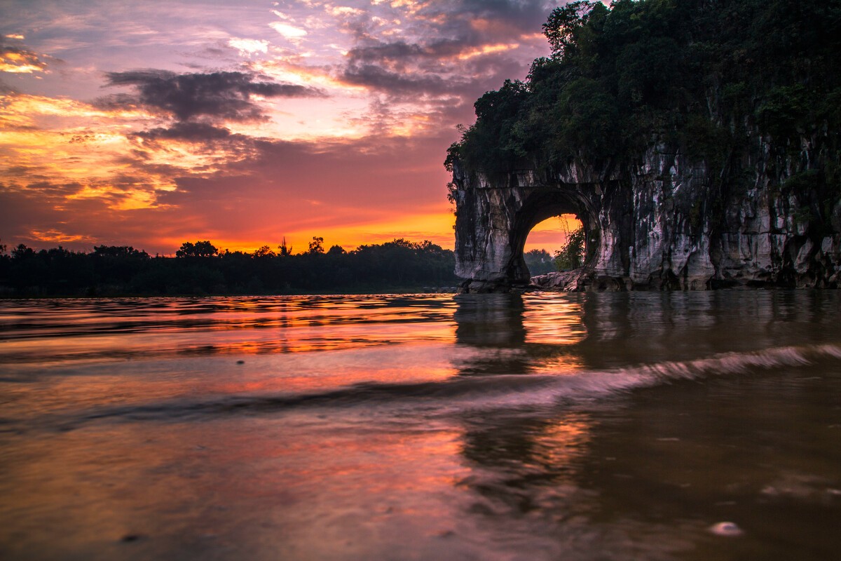独秀峰是桂林最具代表性的地标之一,也是中国喀斯特地貌的典型代表。它高约216米,形似一座孤立的巨岩屹立在平原上,因此得名。登上独秀峰,可以俯瞰整个桂林市区的美景,以及漓江和桃花江的交汇处。