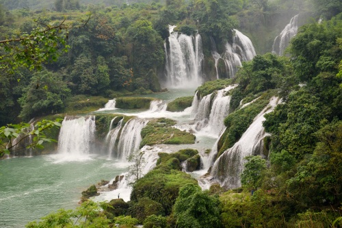 整个景区以绿岛行云、德天瀑布、和太阳幽谷为主要景点,瀑布落差高达70米,水流量具大无需走太近就能听到气势磅礴的瀑布声,完全符合大诗人李白的那句“疑似银河落九天”,因此也被评为国内最美瀑布之一,看过神剧《花千骨》的都会感叹剧中练功处的背景真美,其实里面的取景就是来自于这里哦。