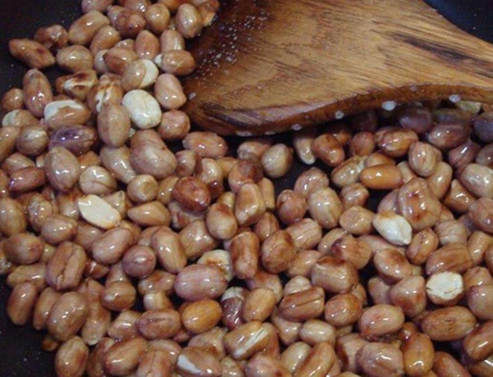 3、花生米临出锅的时候倒入白酒,这样做可以防止花生米出锅后回潮。