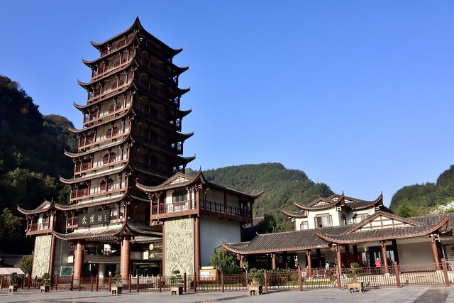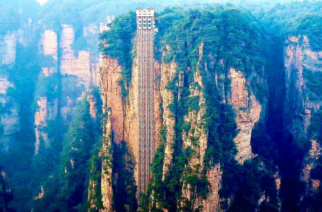 张家界的百龙电梯也以“世界上最高、载重量最大、运行速度最快的全暴露户外观光电梯”三项桂冠独步世界,载入吉尼斯纪录。