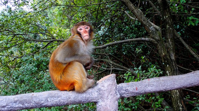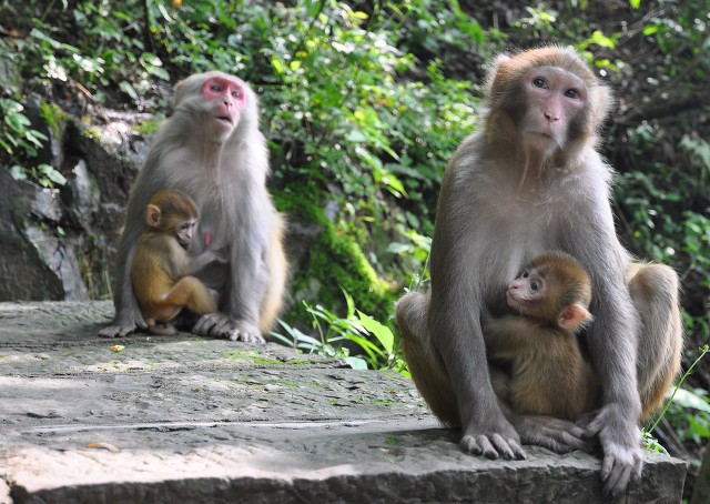 山上猴子一路相伴,拖家带口,不怕游人,不愁吃喝。