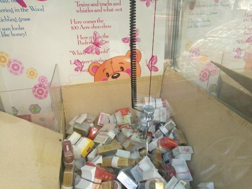 11月13日,记者在保定市秀园路的一间烟草便利店门口就发现了这样两台“抓烟机”。机器的外观与各大商场摆放的“抓娃娃机”基本相同,机身主色调为粉红色,上面标有“礼品贩卖机”字样。而在机器透明的橱窗里,堆积着各种品牌类型的香烟,烟盒上还用皮筋捆绑着配重用的塑料壳。