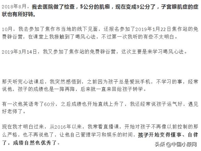 一篇名为《辟谷100天后,我的子宫重获新生》的推文中,一个47岁的阿姨分享了自己从患上腺肌瘤到通过喝风辟谷,病情有好转的经验。