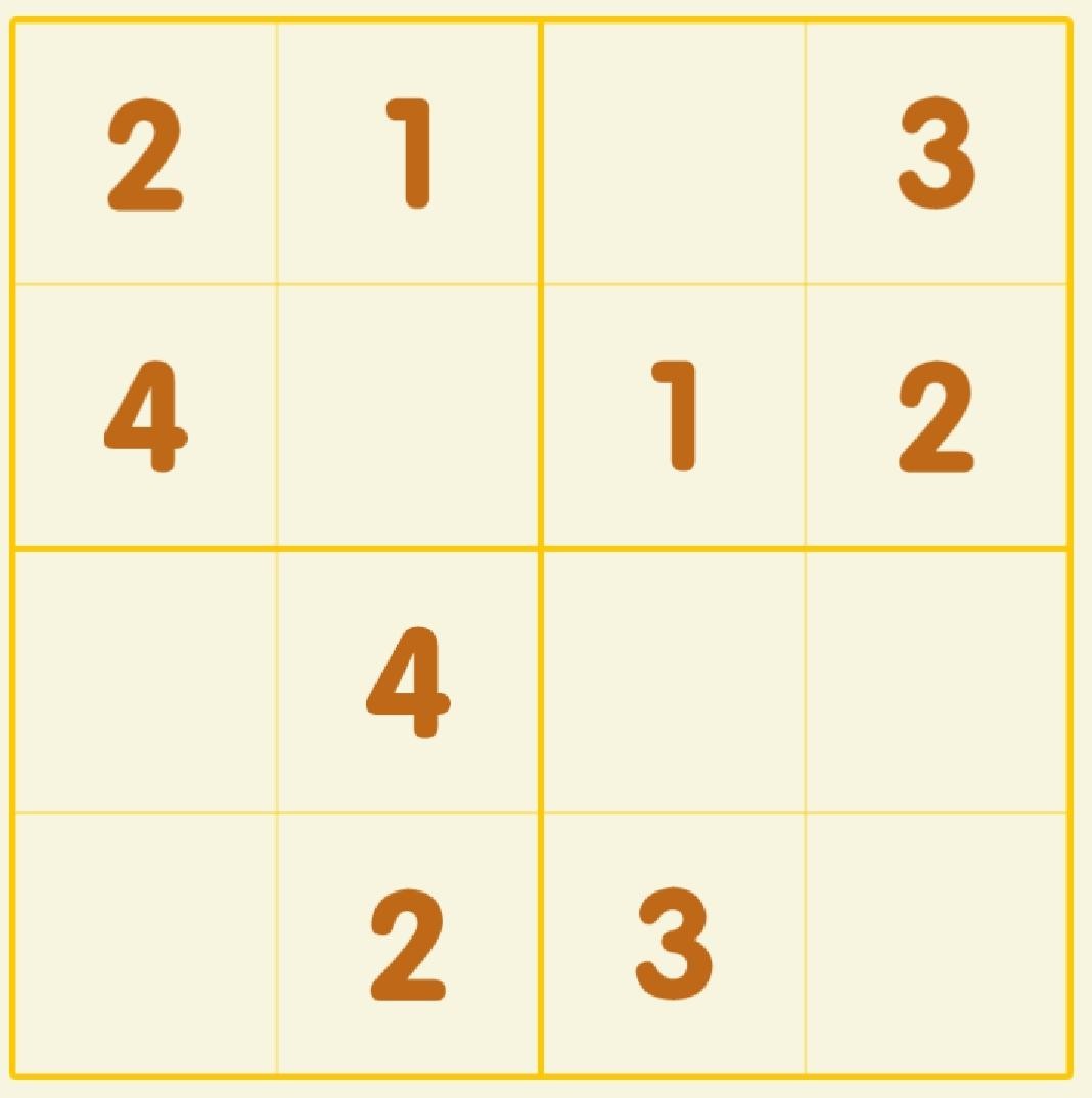 下面这道4X4的迷你数独,来一起看下,找下入手的感觉吧!