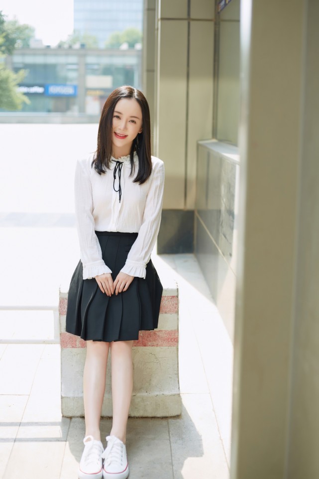魏新雨时尚大片来袭,首次尝试校园风,衬衣配短裙清新可爱