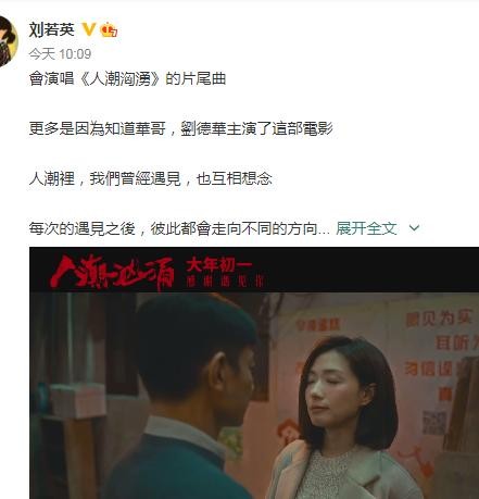 12月31日,刘若英社交媒体上分享了自己为电影《人潮汹涌》演唱的片尾曲《人潮里》的MV,并表示:演唱片尾曲,是因为刘德华主演了这部电影。