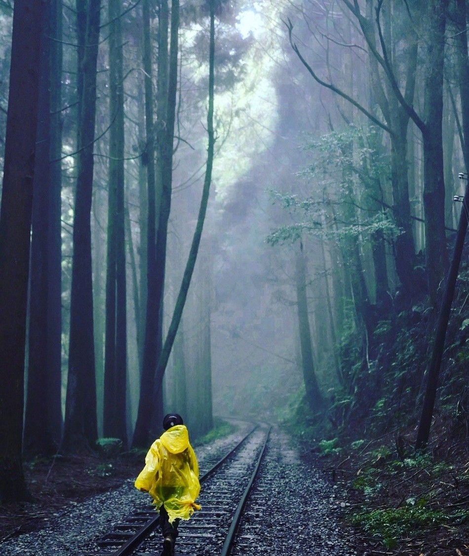 刘若英的5岁的儿子身高非常惊人,如今已经长到了到达妈妈胸部的高度,看上去活泼可爱的他,穿上了黄色的雨衣与妈妈一起在森林中玩耍,也会在铁路的轨道上独自漫步,而妈妈刘若英也在后面给儿子拍下帅气的照片。