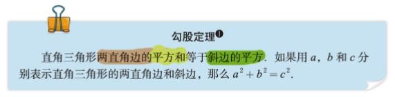 现在我们通过研究发现,如果三遍的关系是这样的,两条短边的平方和等于最长边的平方。那么这个三角形是直角三角形。