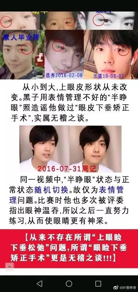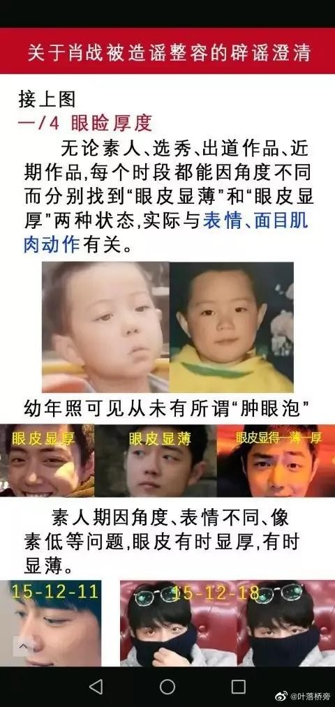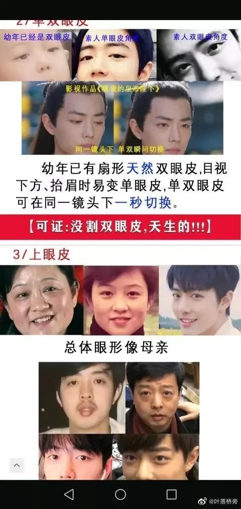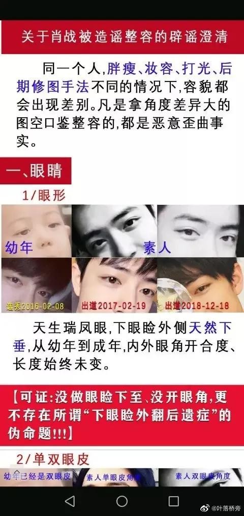 肖战素人时期的眼尾也是上挑的且下眼睑也和现在一样有下垂趋势,有人说肖战的下眼睑没有睫毛,怀疑是眼睑下至后遗症,为此小编特意去百度上询问了专业整型医生,医生否认了手术影响睫毛的说法。所以眼睑下至自然也是不成立的。