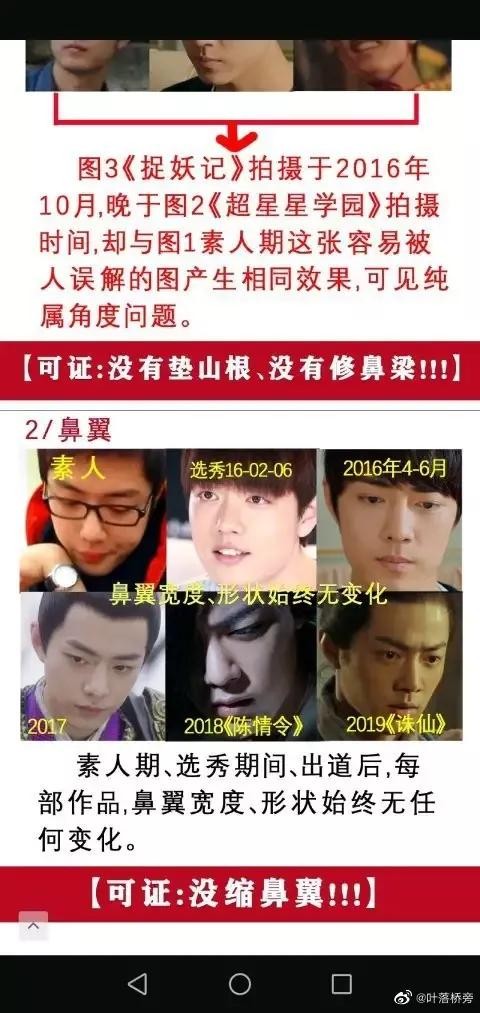 但这就能证明肖战没有整容吗?当然不能。所以,小编又本着严谨的吃瓜态度,找来了看着还靠谱点的肖战素人时期照片和现在的照片进行对比。从图片中我们可以看出同一角度下肖战眼角到鼻翼到嘴角的位置和素人时期一致,排除开眼角可能。其实从素人到现在肖战的面部一直都有一个明显的缺陷——鼻小柱后缩,鼻小柱后缩就是鼻翼较短,从视觉效果上会显得大鼻孔。如果是去整容医院整形的话医生一定会最先帮他改善鼻小柱问题。