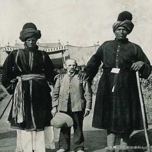 1903年,两个克什米尔巨人与美国摄影师James Ricalton的合影。