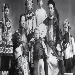 一位官员与家人的合影,妻子端庄美丽,身边儿女成群