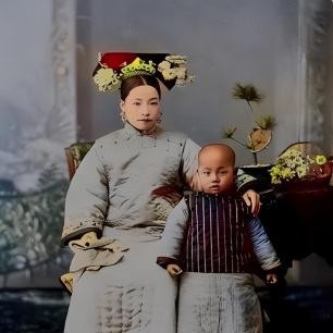 俩人是一对母子,母亲穿着十分考究。
