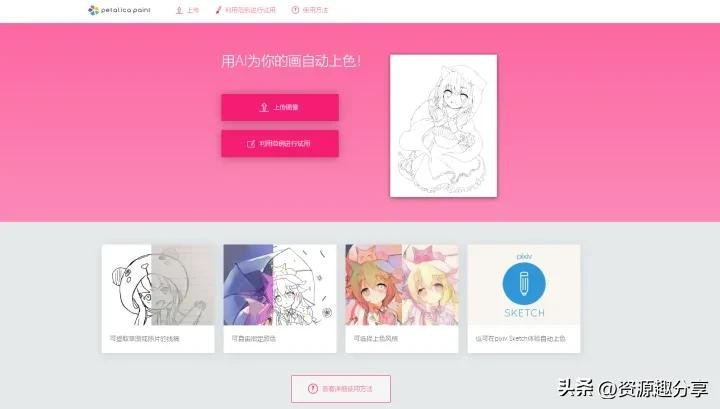 这个网站可以上传线稿,指定风格或颜色,它就自动帮我们上色了。上色的效果也是很不错的,画在纸上的草稿也可以拍照扫描提取。很适合爱画画的小伙伴收藏!