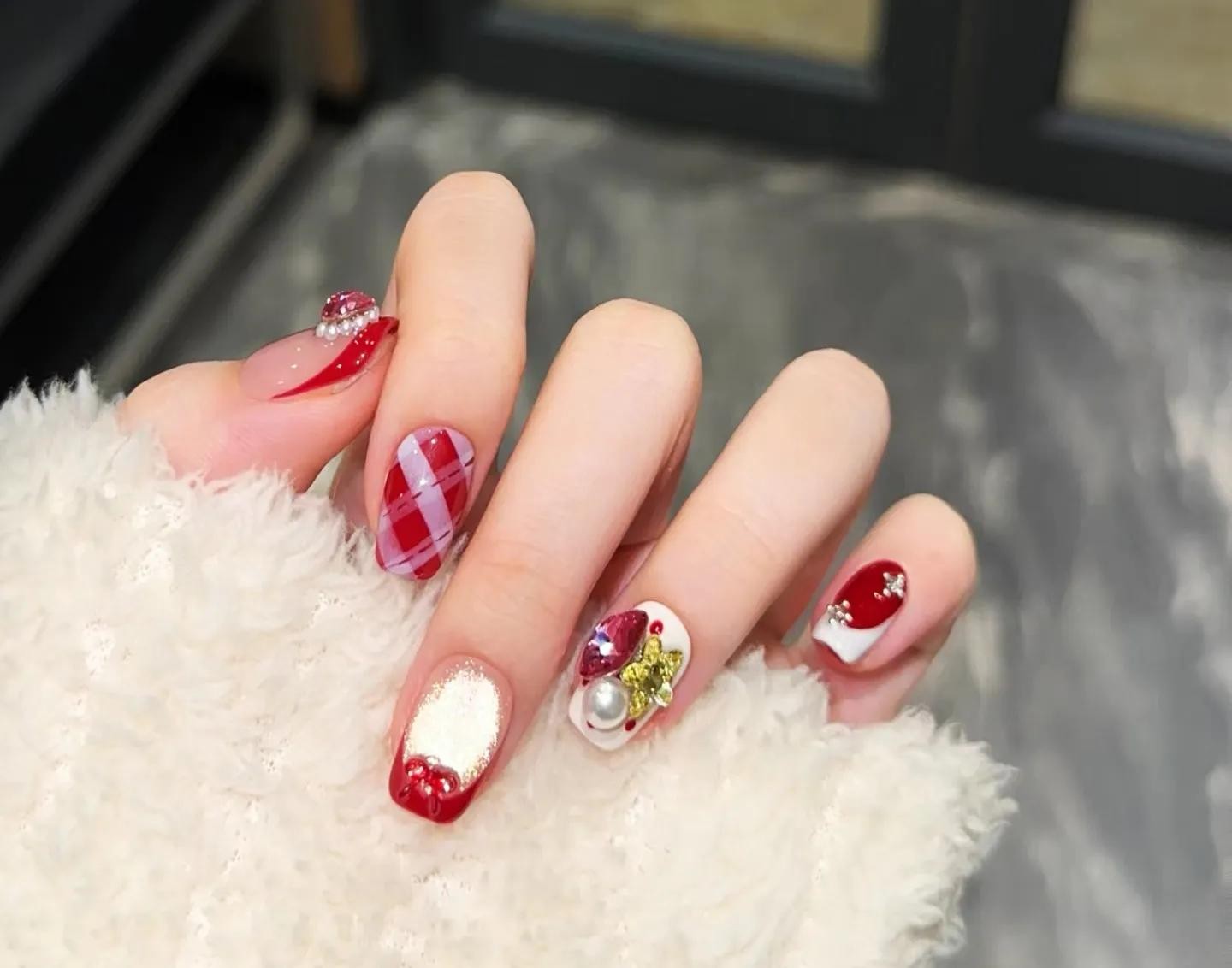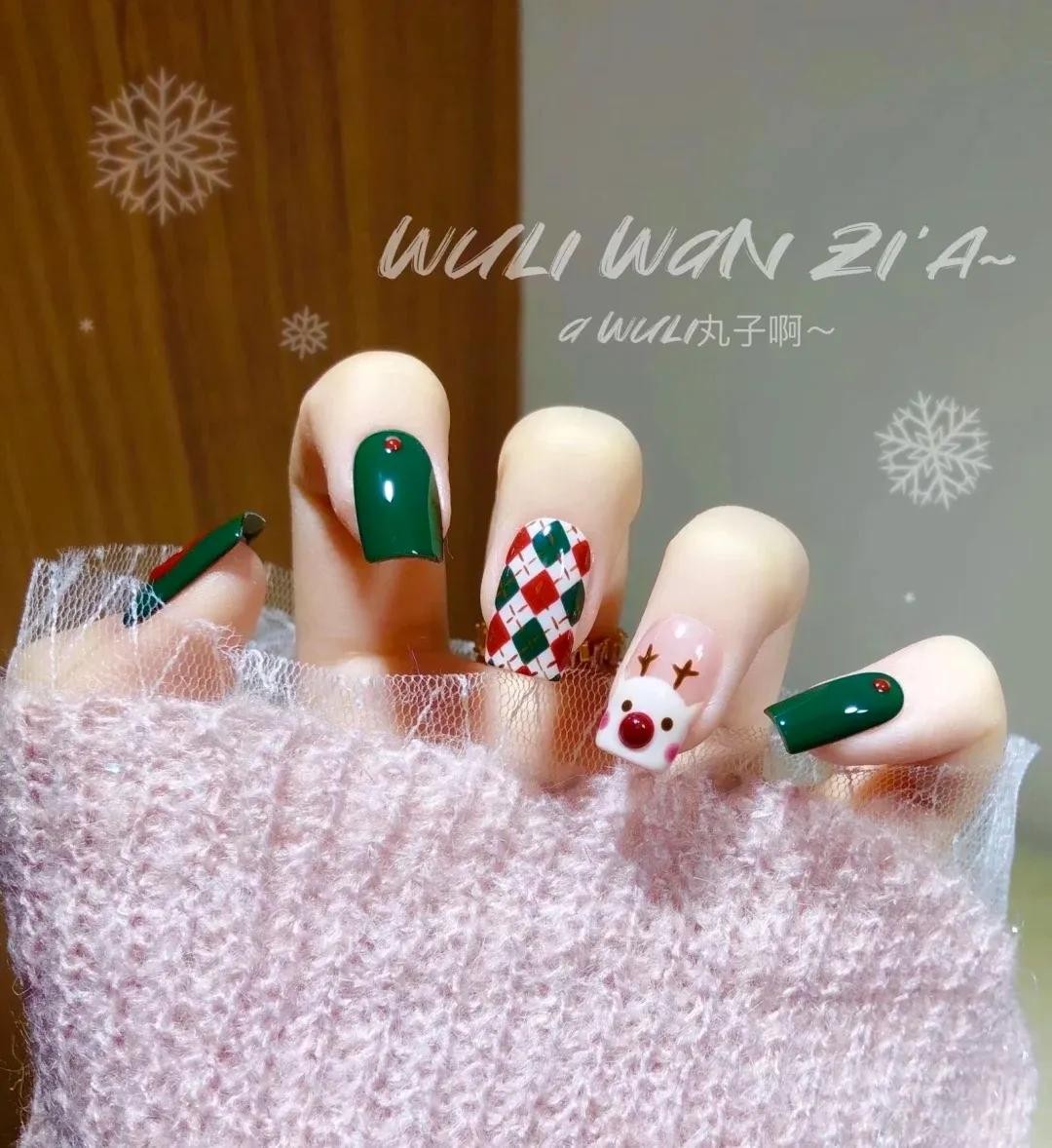 名媛格子风圣诞美甲