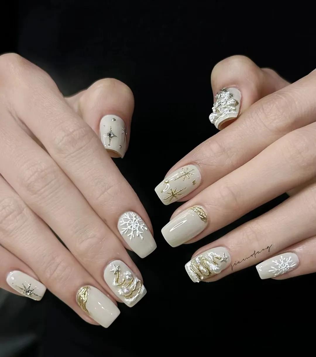 白色圣诞美甲,高级的美!