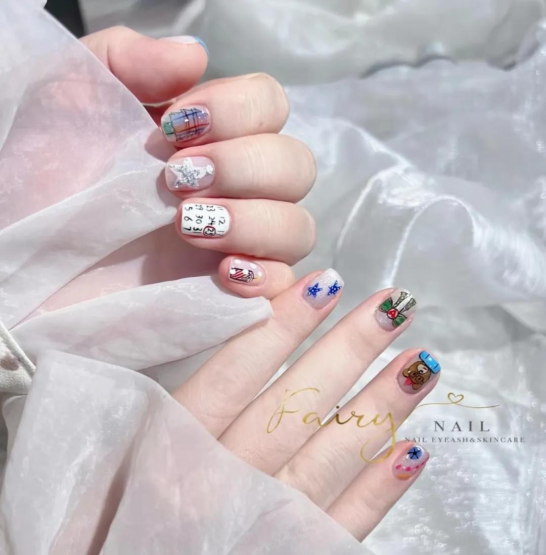 元气卡通少女圣诞美甲