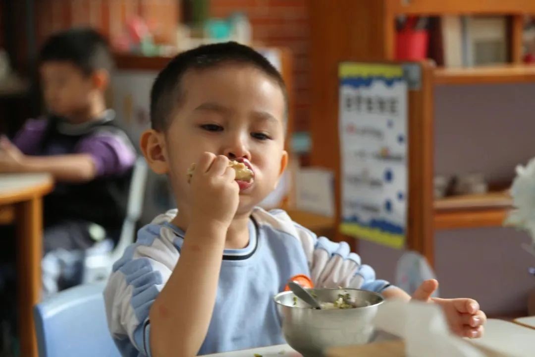 “咕噜咕噜”,能量补给时间终于到了,孩子们自主盥洗,独立进餐,小小的身影让家长们看到了大大的成长。