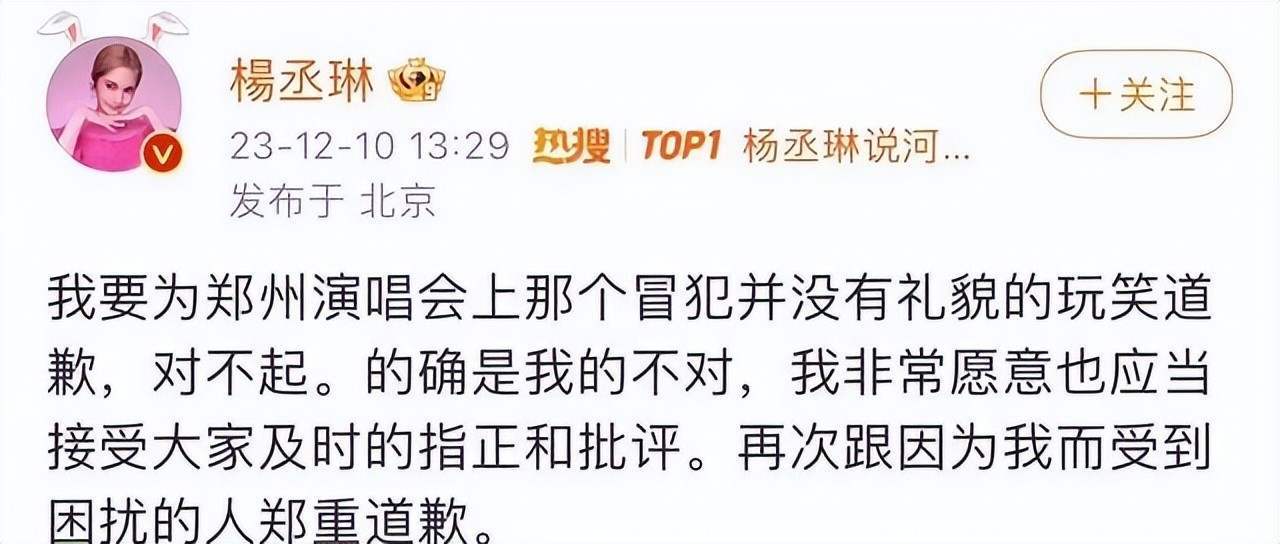 为了平息这场风波,杨丞琳迅速通过社交媒体发布了道歉声明。她在声明中表示深刻意识到自己的不当言论,对于可能造成的伤害和误解表示歉意,并承诺将更加注意言辞,避免再次发生类似的情况。尽管她的道歉态度显得非常诚恳,但河南的网友们似乎并不容易接受这样的解释。