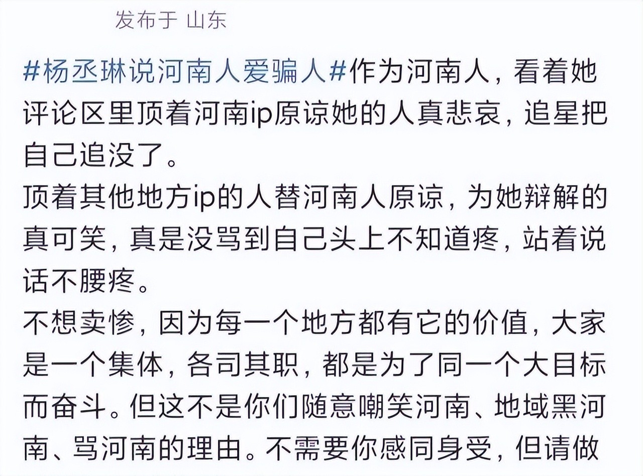 在杨丞琳的一次演唱会上,她曾公开表示她对河南的爱。这些粉丝认为,杨丞琳的错误在于她没有意识到在公众场合开这样的玩笑可能会引发误解。尽管如此,她的许多粉丝依然坚定地支持她。然而,值得注意的是,在这些支持她的声音中,似乎缺少了来自河南的粉丝。