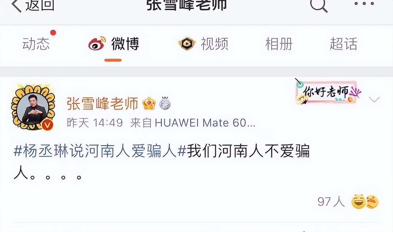 著名教育学者张雪峰在社交媒体上发声,参与了围绕杨丞琳言论引起的热议。他在发布的帖子中使用了话题标签“我们河南人不骗人”,进一步激化了这一事件的讨论。张雪峰的这一行为获得了许多网友的支持,他们认为张老师的做法展现了真性情和直率。同时,也有部分女星的粉丝对他提出了批评,认为他不应该干涉这样的话题。