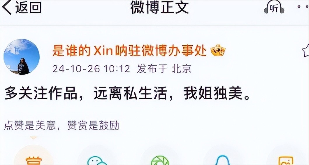 “多关注作品,远离私生活,我姐独美”。