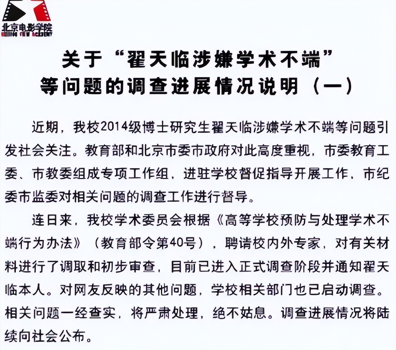 由于事态过于严重,北影也在第一时间对此事展开了调查。